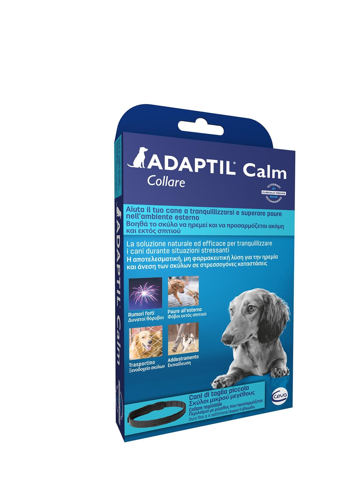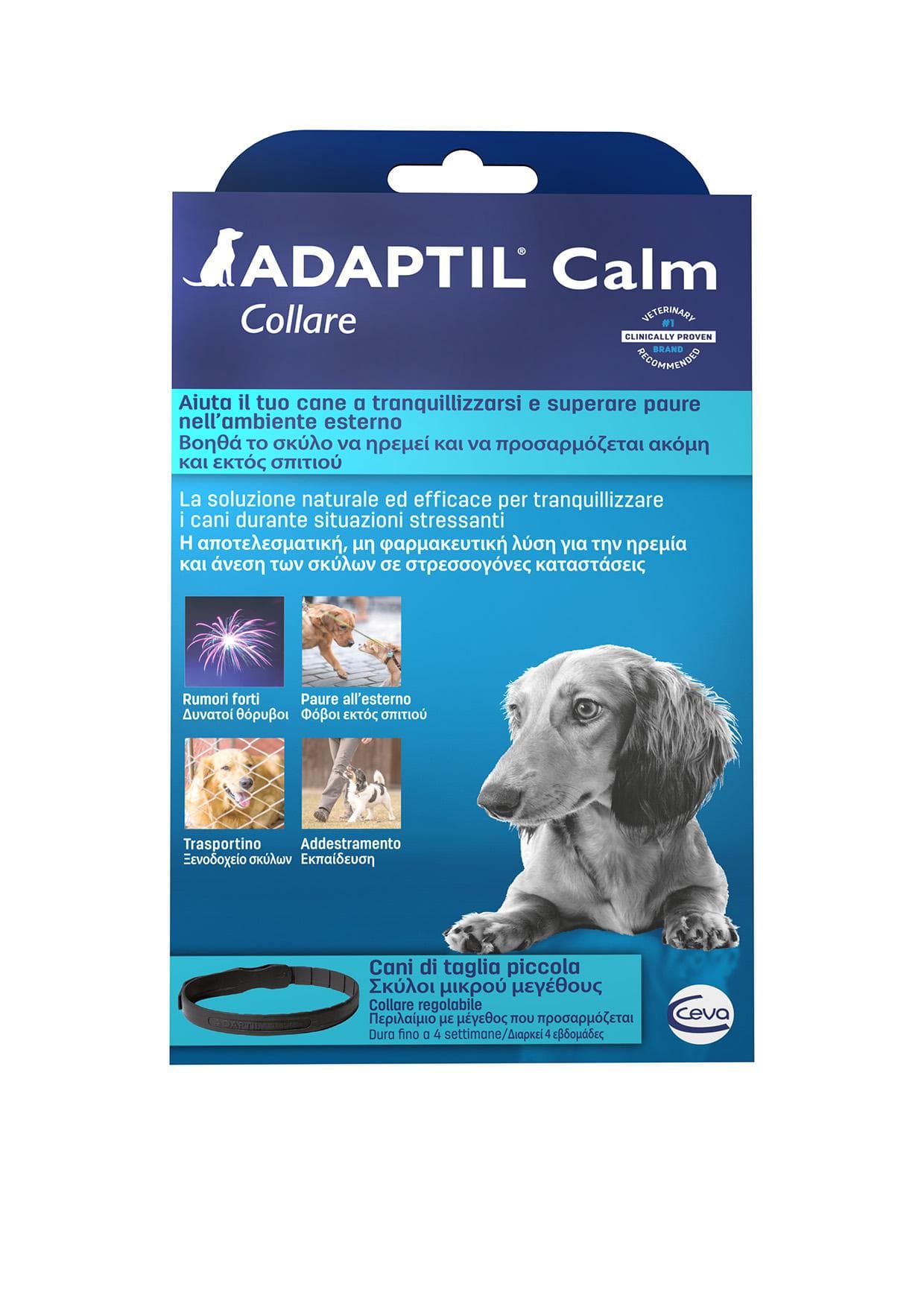 ADAPTIL Calm Collare è un’eccellente soluzione per aiutare il tuo cane a rimanere calmo ed adattarsi fuori casa, in situazioni come rumori forti, educazione, viaggi e paure.