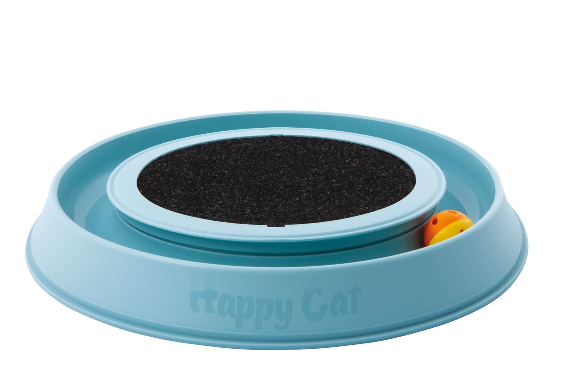 HAPPYCAT è un gioco per gatti molto divertente: il gatto tenterà di far uscire la pallina inserita nella scanalatura circolare, ed è proprio il movimento di questa che cattura la sua attenzione.