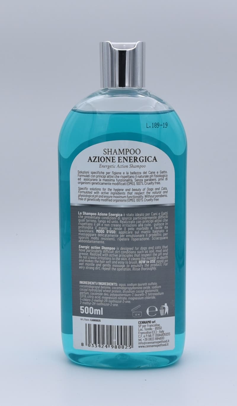 Lo Shampoo Azione Energica è stato ideato per Cani e Gatti che presentano condizioni di sporco particolarmente