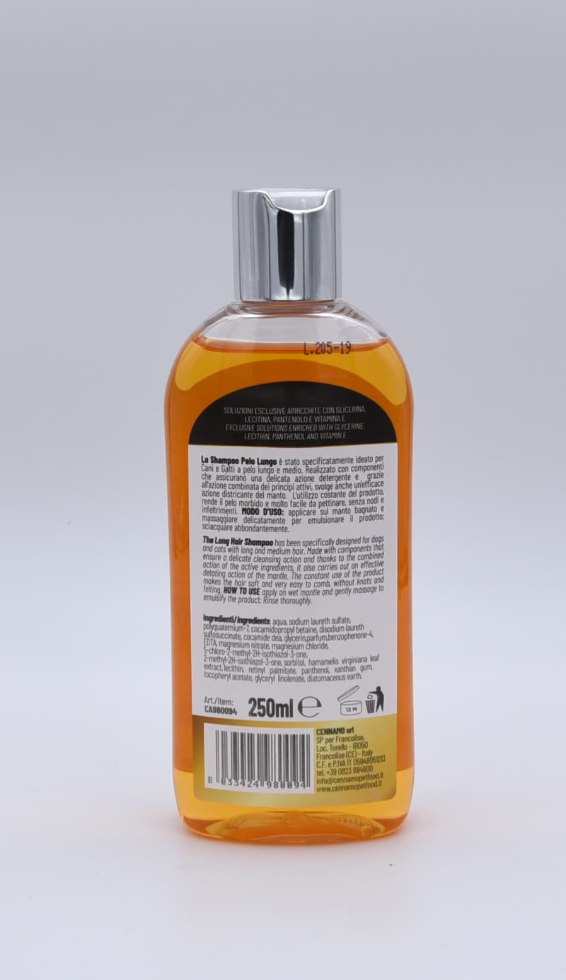 The Long Hair Shampoo has been specifically designed for dogs and cats with long and medium hair. Made with components that ensure a delicate cleansing action and it also carries out an effective detating action of the mantle. The constant use of the product makes the hair soft and very easy to comb, without knots and felting.
