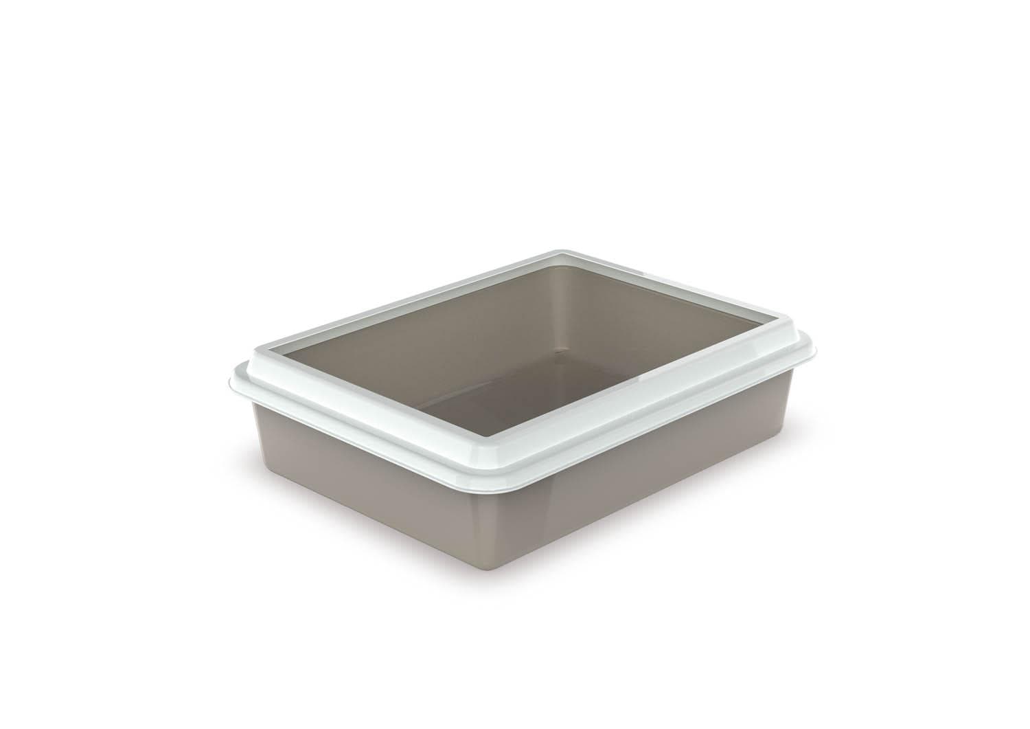 Vaschetta MAX con cornice per evitare che il gatto, raspando per coprire i bisogni appena fatti, faccia uscire la lettiera dalla toilette. È una cat toilette tradizionale semplice, economica, facile da pulire e resistente.